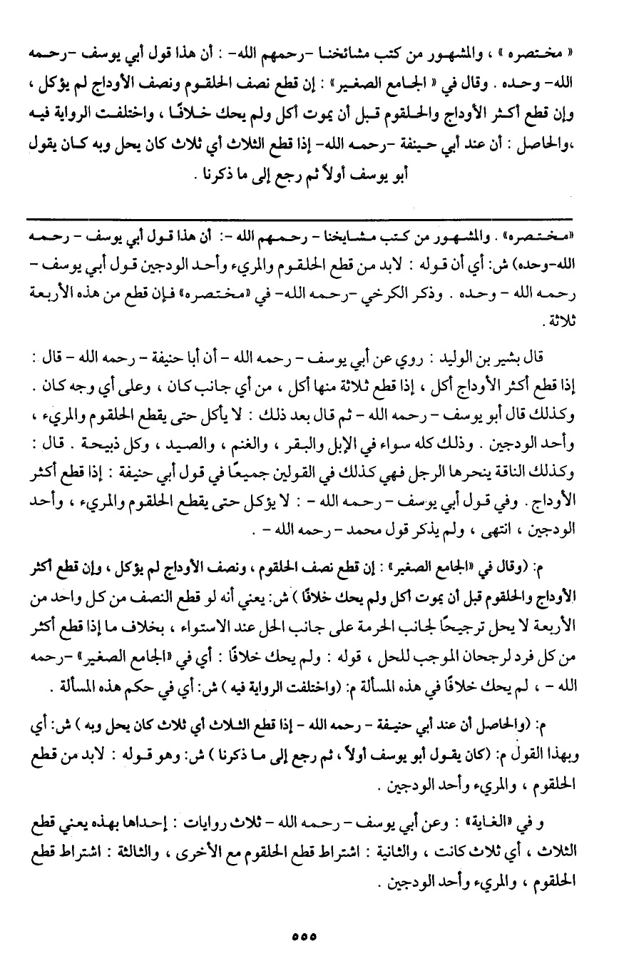 ـــــــــــــــــــــــــــــQ" مختصره ". والمشهور من كتب مشايخنا - رَحِمَهُمُ اللَّهُ -: أن هذا قول أبي يوسف - رَحِمَهُ اللَّهُ - وحده) ش: أي أن قوله: لا بد من قطع الحلقوم والمريء وأحد الودجين قول أبي يوسف - رَحِمَهُ اللَّهُ - وحده. وذكر الكرخي - رَحِمَهُ اللَّهُ - في " مختصره " فإن قطع من هذه الأربعة ثلاثة.