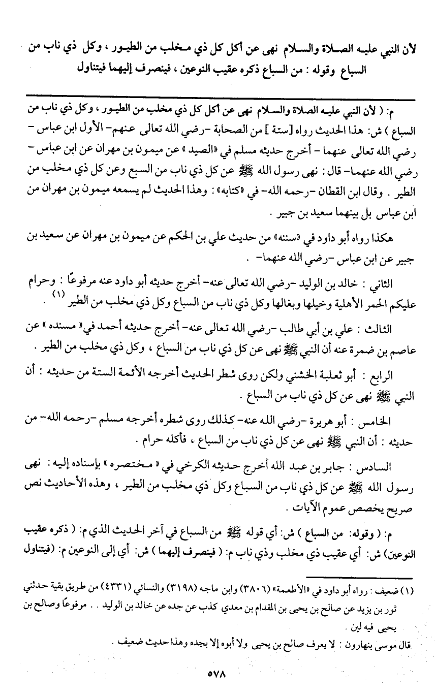 الثاني: خالد بن الوليد - رَضِيَ اللَّهُ تَعَالَى عَنْهُ - أخرج حديثه أبو داود عنه مرفوعا: وحرام عليكم الحمر الأهلية وخيلها وبغالها وكل ذي ناب من السباع وكل ذي مخلب من الطير.