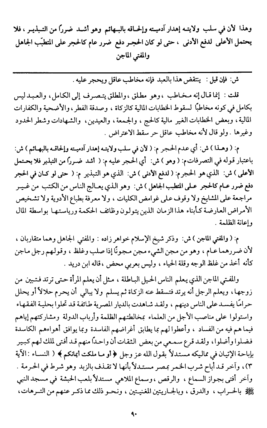 ـــــــــــــــــــــــــــــQش: فإن قيل: ينتقض هذا بالعبد فإنه مخاطب عاقل ويحجر عليه.