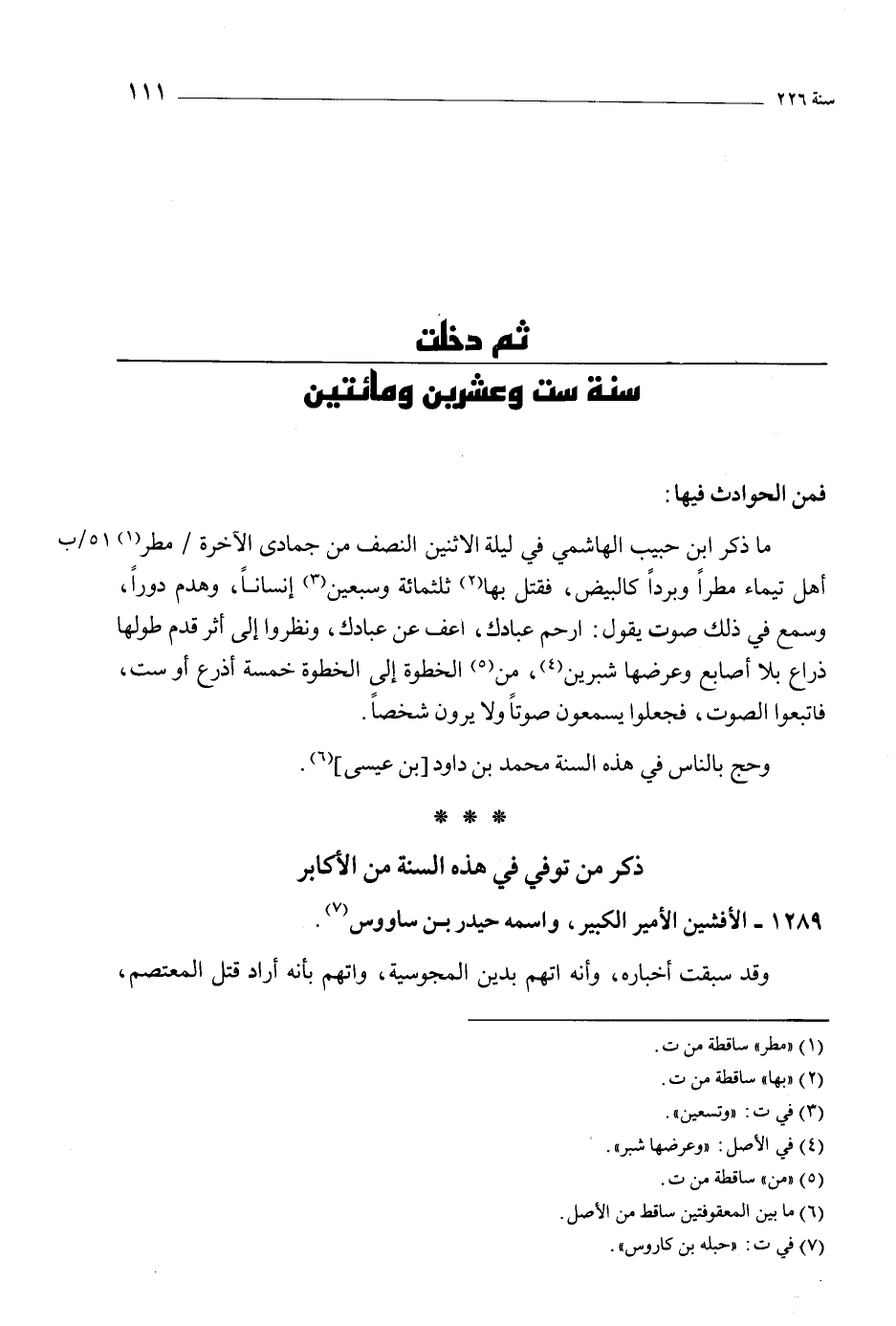 ثُمّ دخلت سنة ست وعشرين ومَائتين