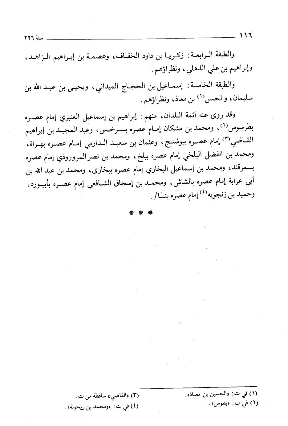 والطبقة الرابعة: زكريا بْن داود الخفاف، وعصمة بن إبراهيم الزاهد، وإبراهيم بن علي الذهلي، ونظراؤهم.