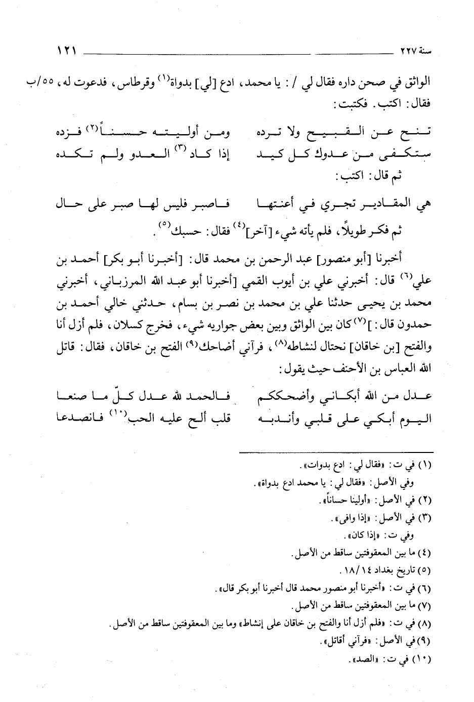 [8] في ت: «فلم أزل أنا والفتح بن خاقان على إنشاط» وما بين المعقوفتين ساقط من الأصل.