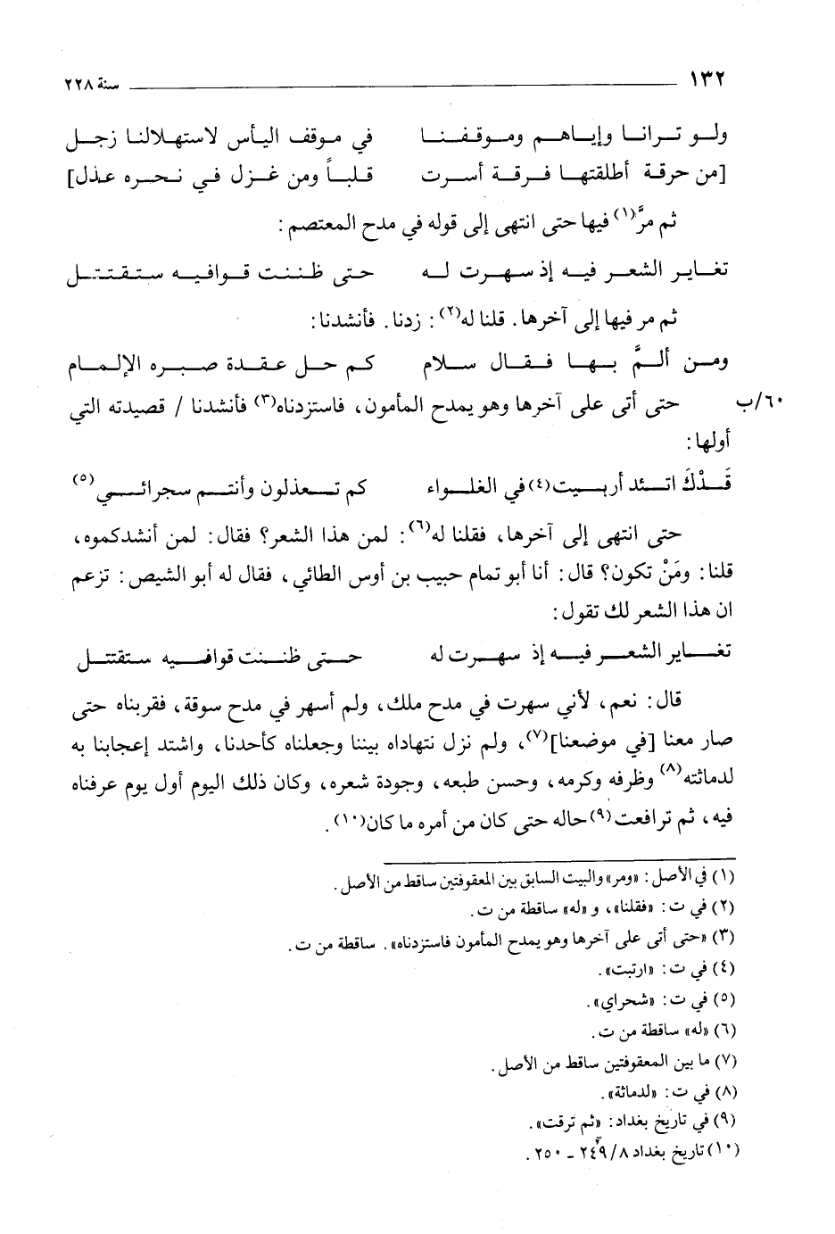 [3] «حَتَّى أتى عَلَى آخرها وَهُوَ يمدح المأمون فاستزدناه» . ساقطة من ت.