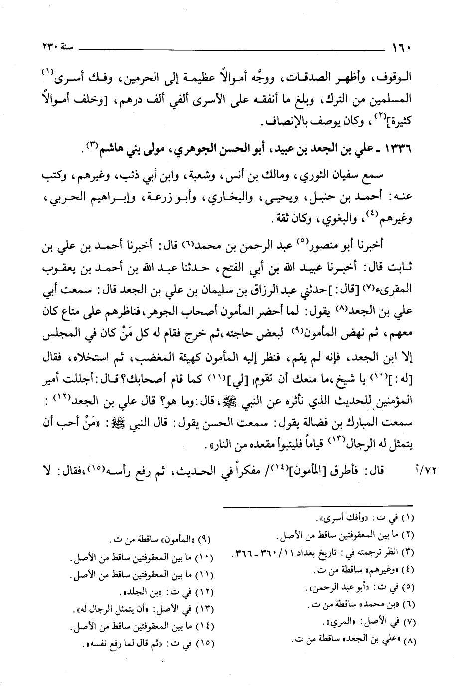 1336- علي بْن الجعد بْن عبيد، أبو الحسن الجوهري، مولى بني هاشم [3] .