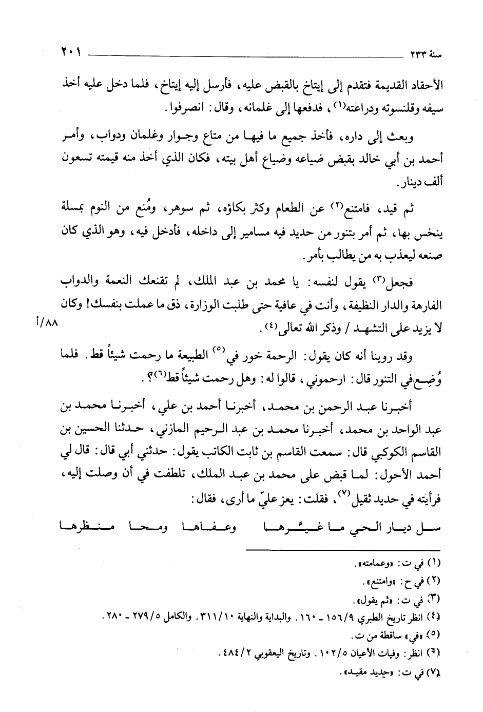 [4] انظر تاريخ الطبري 9/ 156- 160. والبداية والنهاية 10/ 311. والكامل 5/ 279- 280.