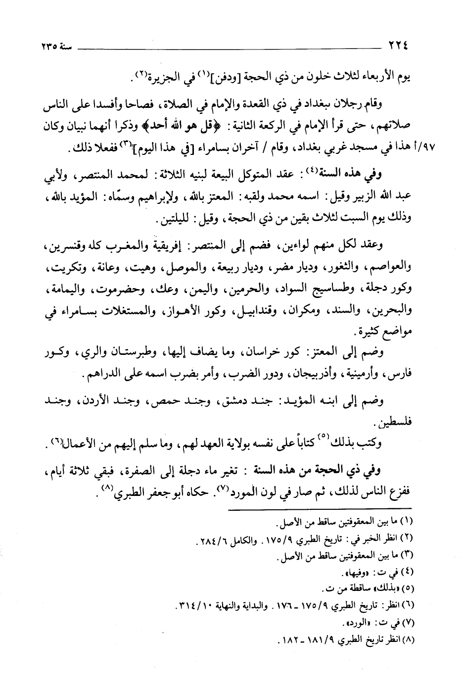 [6] انظر: تاريخ الطبري 9/ 175- 176. والبداية والنهاية 10/ 314.