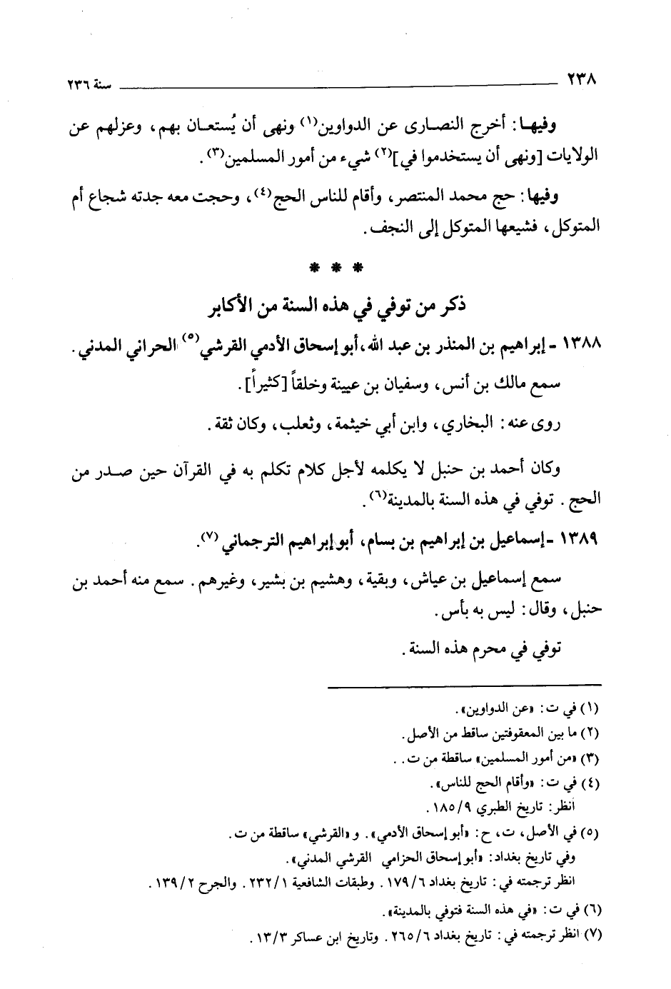 [6] في ت: «في هذه السنة فتوفي بالمدينة» .
