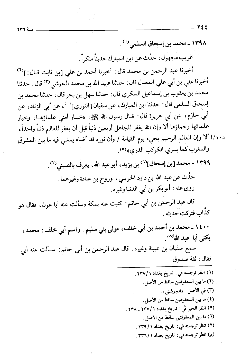[7] انظر ترجمته في: تاريخ بغداد 1/ 239.