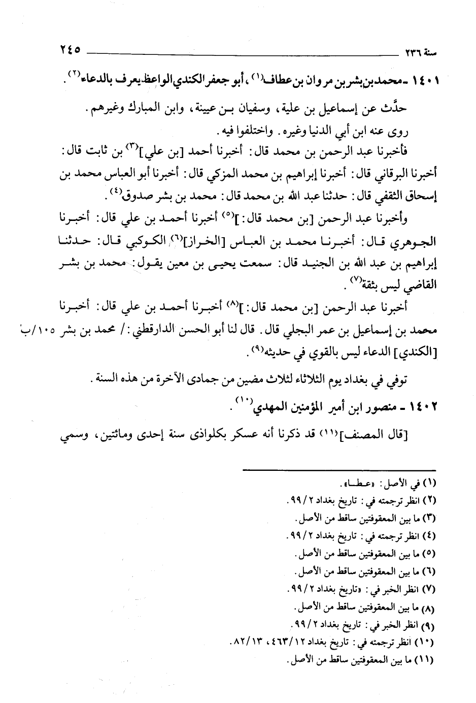 [10] انظر ترجمته في: تاريخ بغداد 12/ 463، 13/ 82.
