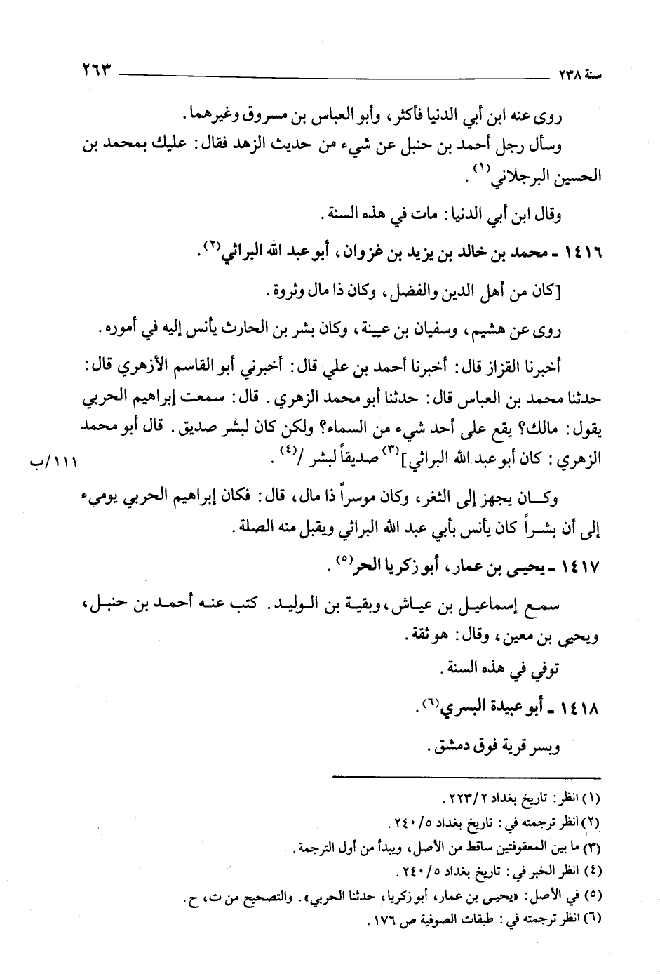 [4] انظر الخبر في: تاريخ بغداد 5/ 240.
