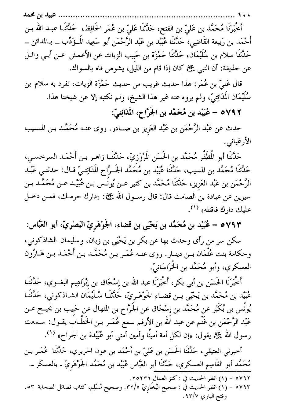 5792- عبيد بن محمد بن الجراح، المدائني: