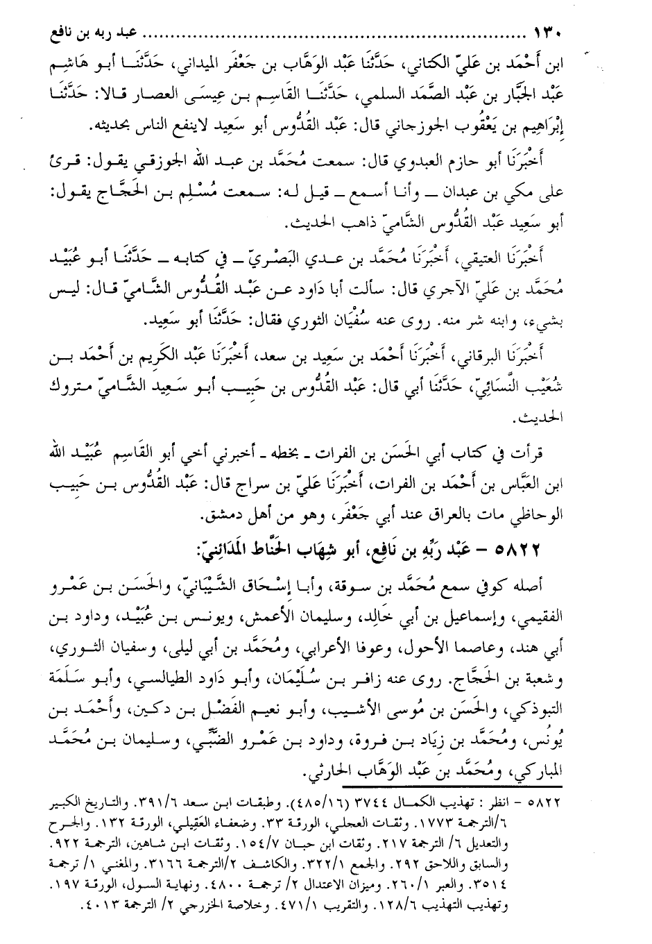 5822- عبد ربه بن نافع، أبو شهاب الحناط المدائني [1] :