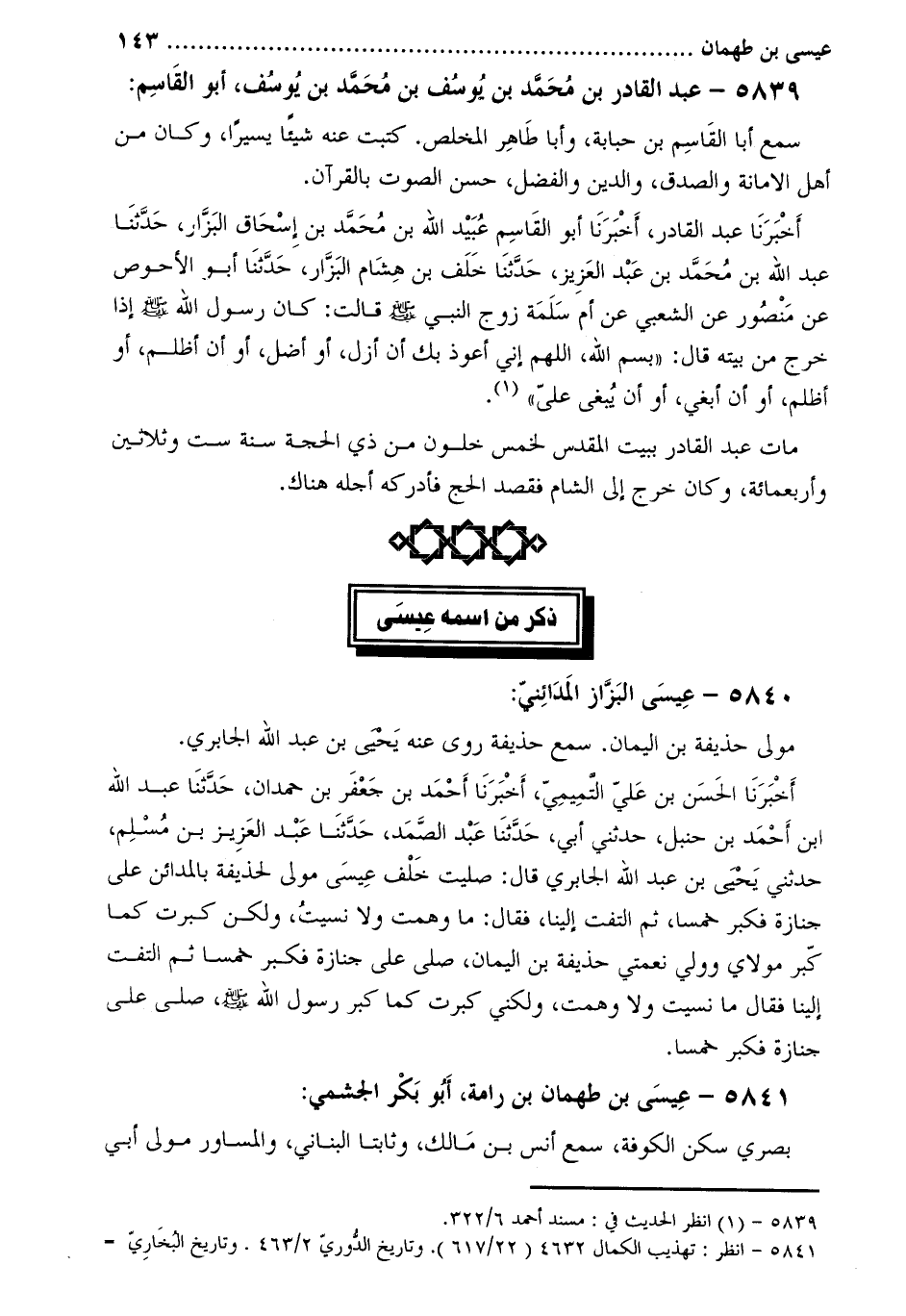 [2] 5841- انظر: تهذيب الكمال 32/46 (22/617) . وتاريخ الدّوريّ 2/463. وتاريخ البخاريّ-