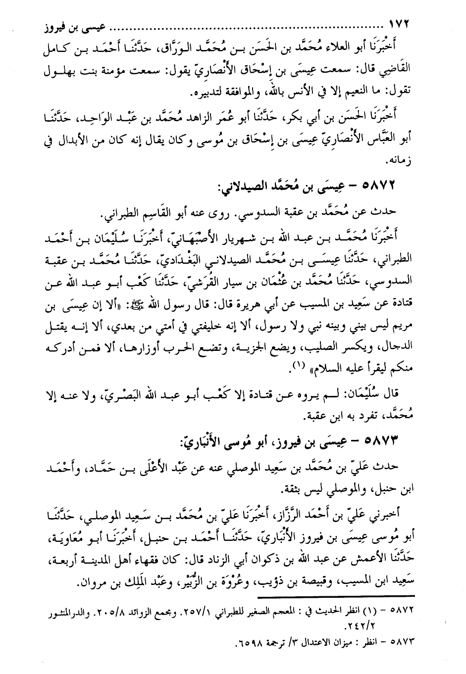 [2] 5873- انظر: ميزان الاعتدال 3/ترجمة 6598.