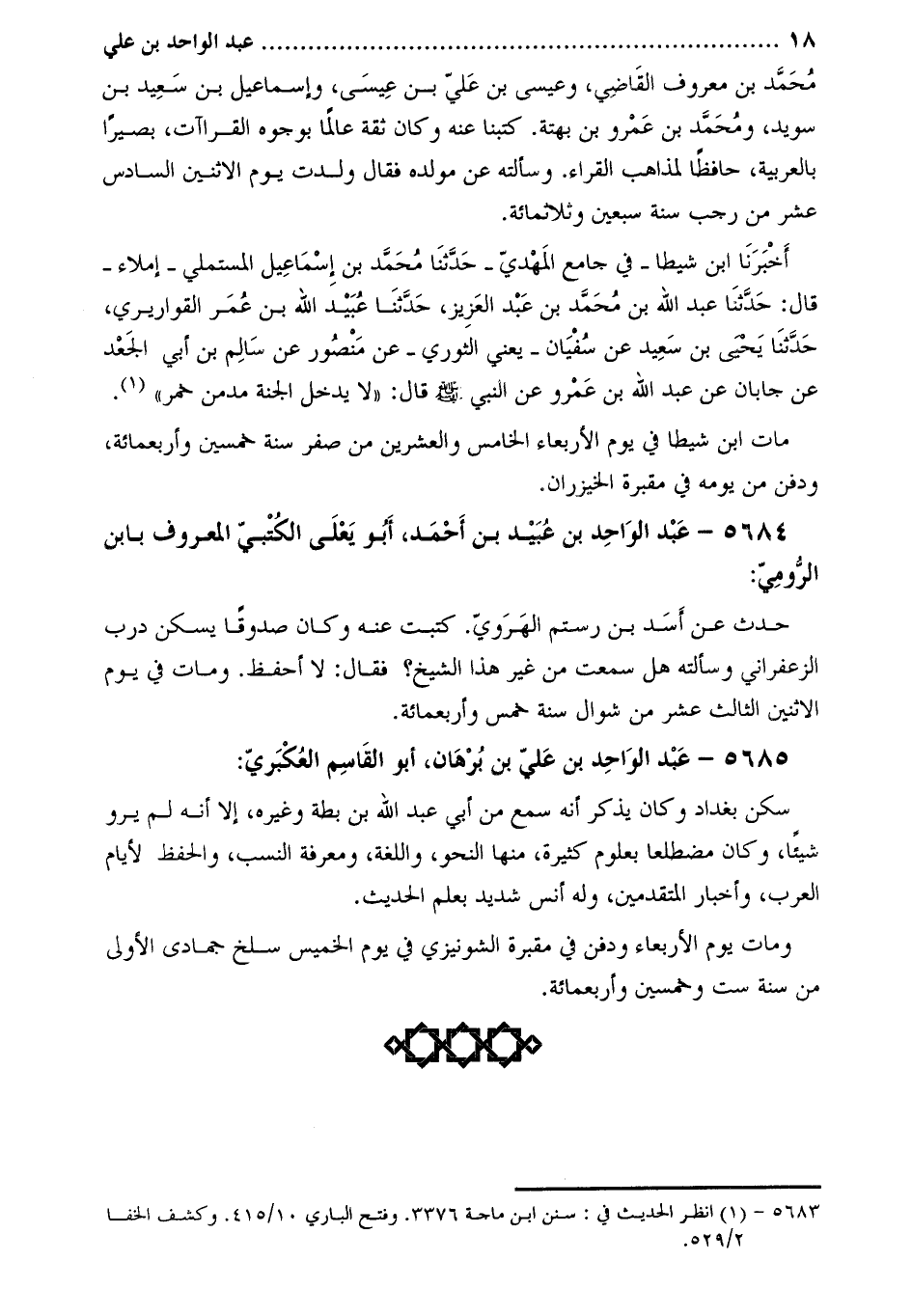 5684- عبد الواحد بن عبيد بن أحمد، أبو يعلى الكتبي المعروف بابن الرومي: