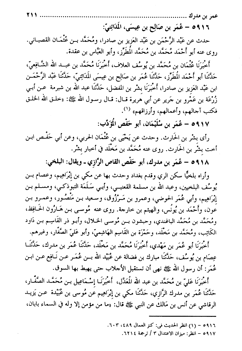 [2] 5917- انظر: ميزان الاعتدال 3/ترجمة 6214.