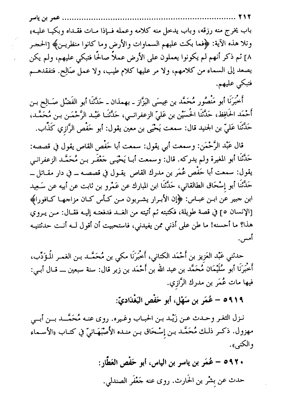 5920- عُمَر بْن ياسر بْن الياس، أَبُو حفص العطار: