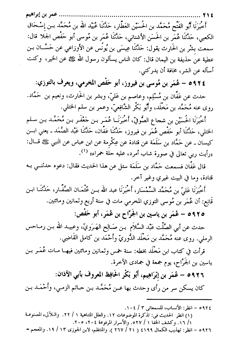 5924- عُمَر بْن مُوسَى بْن فيروز، أَبُو حفص المخرمي، ويعرف بالتوزي [1] :