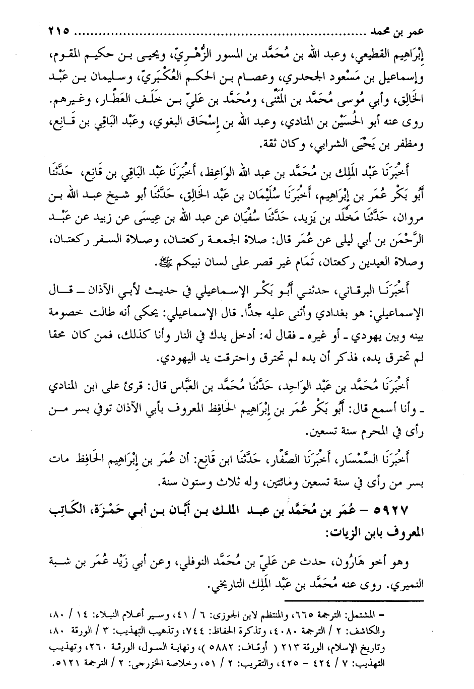 5927- عُمَر بْنِ مُحَمَّد بْن عَبْد الملك بْن أبان بْن أَبِي حمزة، الكاتب المعروف بابن الزيات: