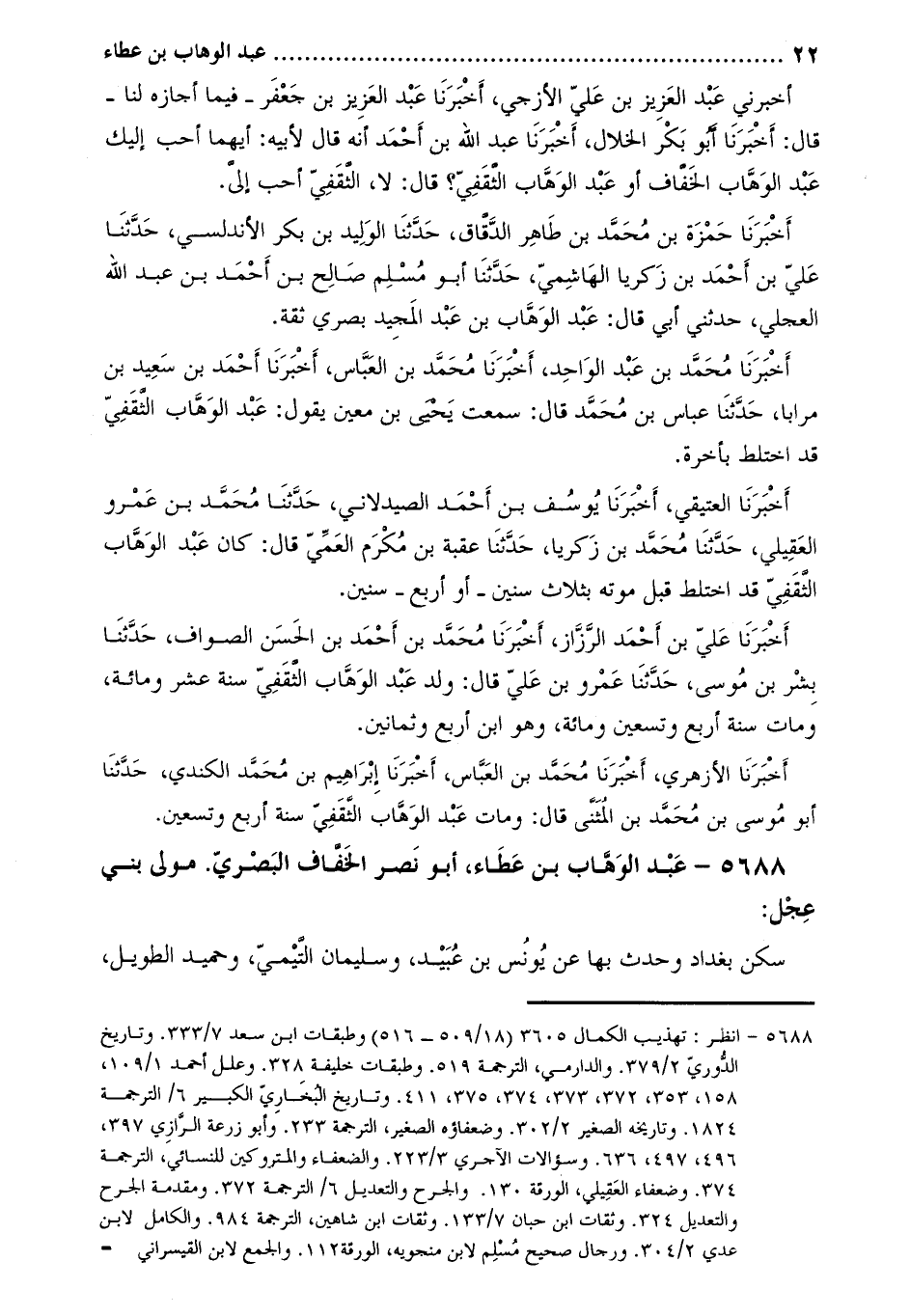 5688- عبد الوهاب بن عطاء، أبو نصر الخفاف البصري. مولى بني عجل [1] :