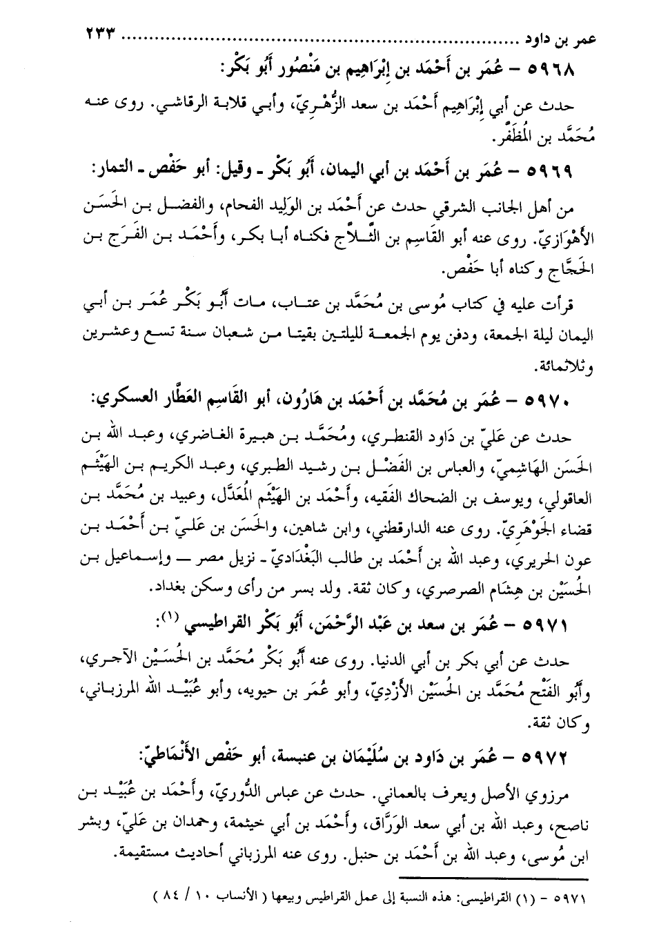 5971- عُمَر بْن سعد بْن عَبْد الرَّحْمَن، أَبُو بكر القراطيسي [1] :