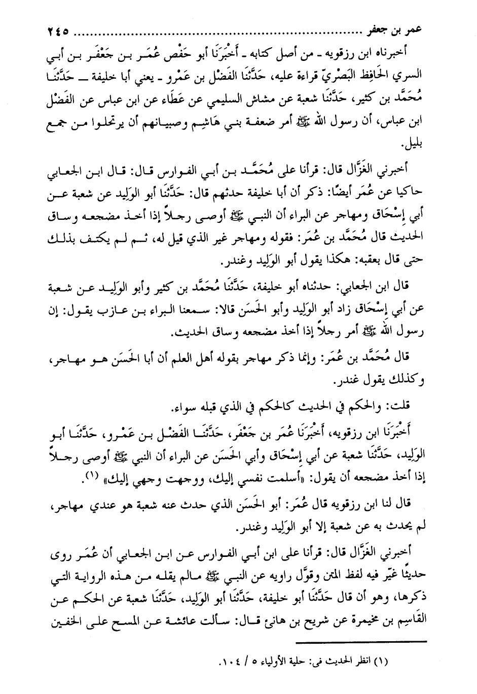 [1] انظر الحديث في: حلية الأولياء 5/104.