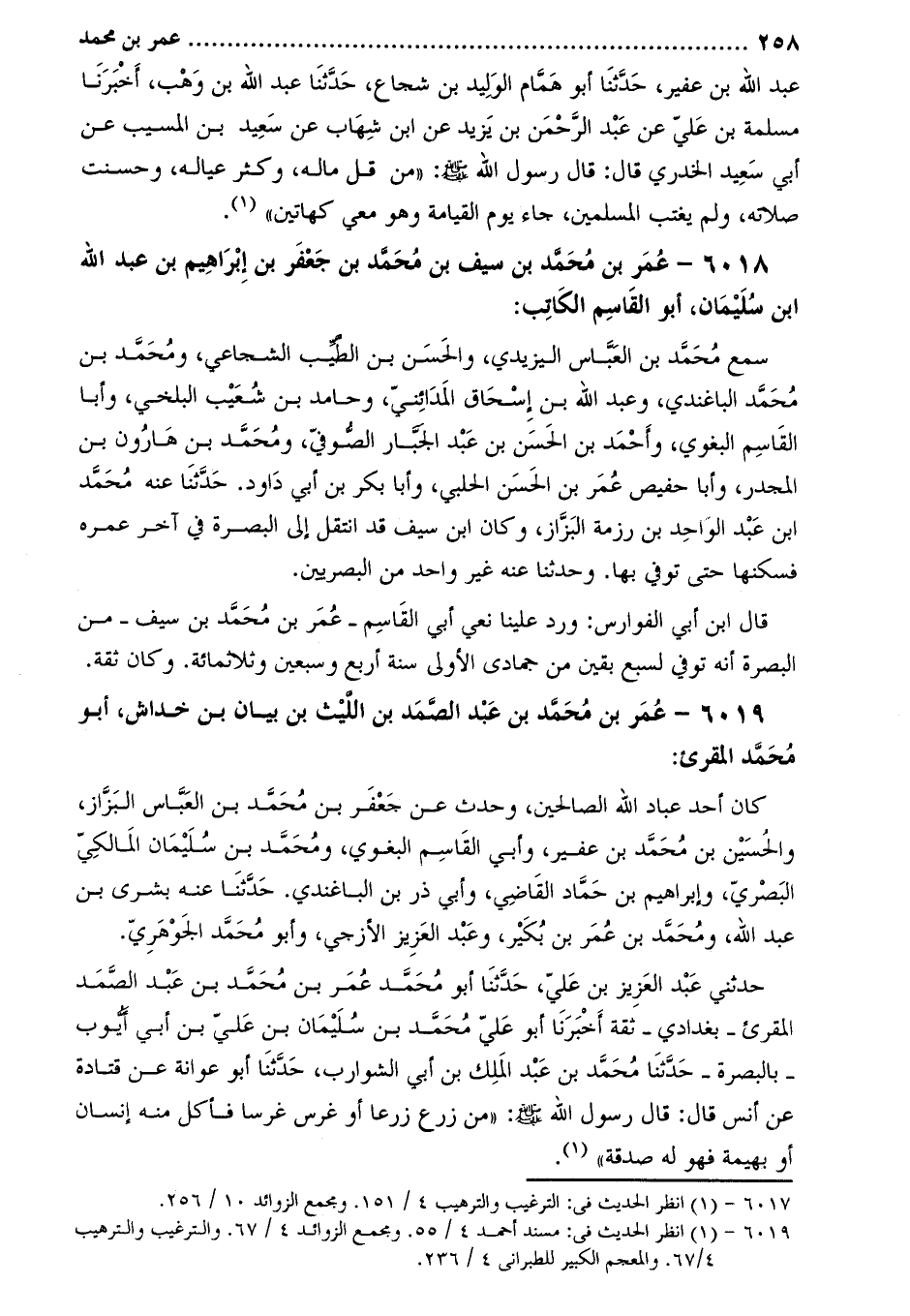 6019- عُمَر بْن مُحَمَّد بْن عَبْد الصمد بْن الليث بْن بيان بْن خداش، أَبُو مُحَمَّد المقرئ: