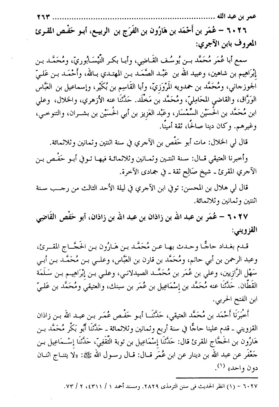 6026- عُمَر بْن أَحْمَد بْن هارون بْن الفرج بْن الربيع، أَبُو حفص المقرئ المعروف بابن الآجري: