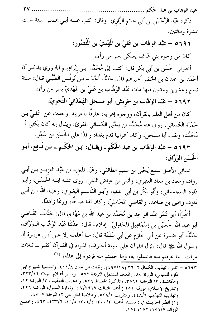 5693- عبد الوهاب بن عبد الحكم- ويقال: ابن الحكم- بن نافع، أبو الحسن الوراق [1] :