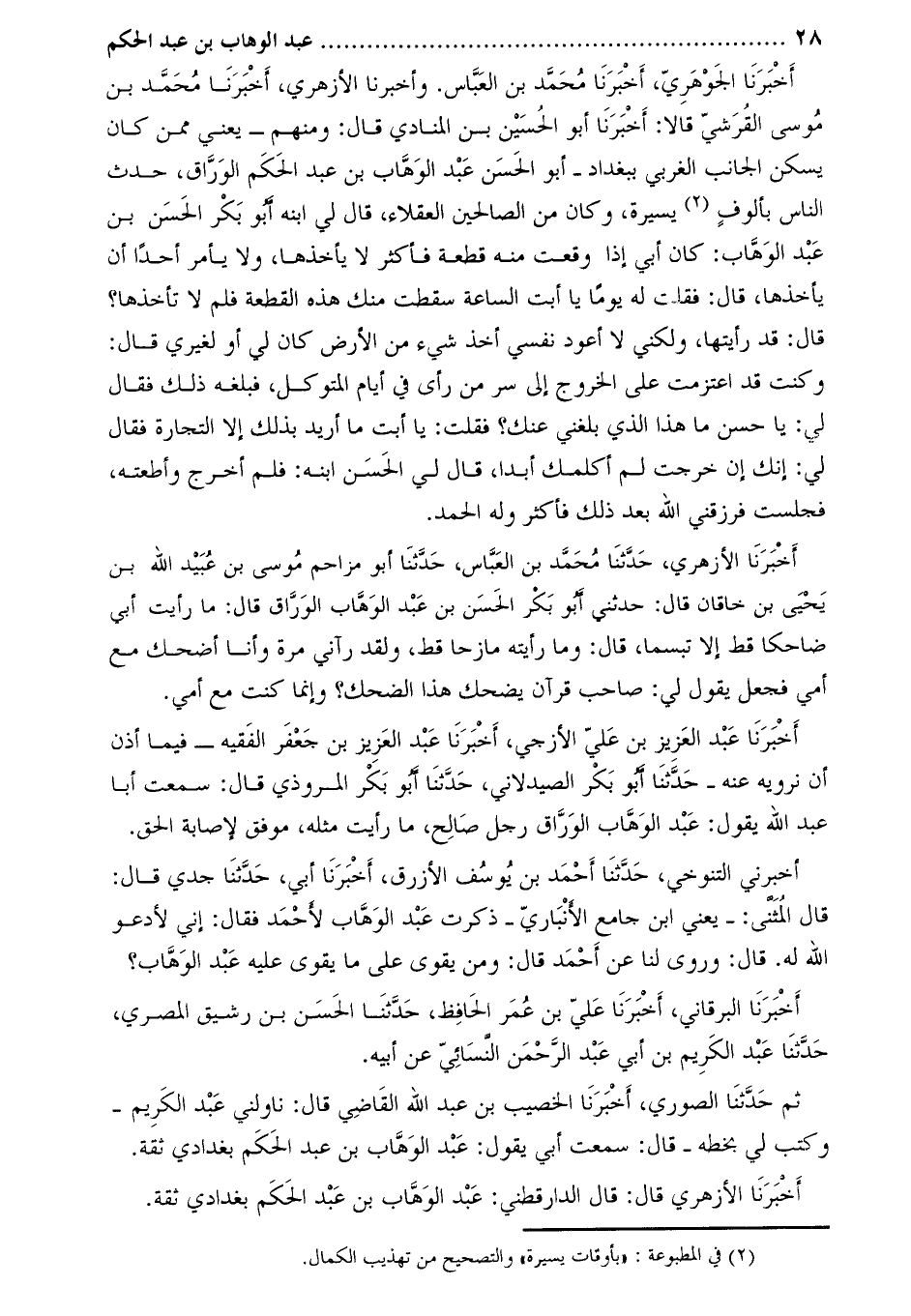 أَخْبَرَنَا الأزهري قال: قال الدارقطني: عبد الوهاب بن عبد الحكم بغدادي ثقة.