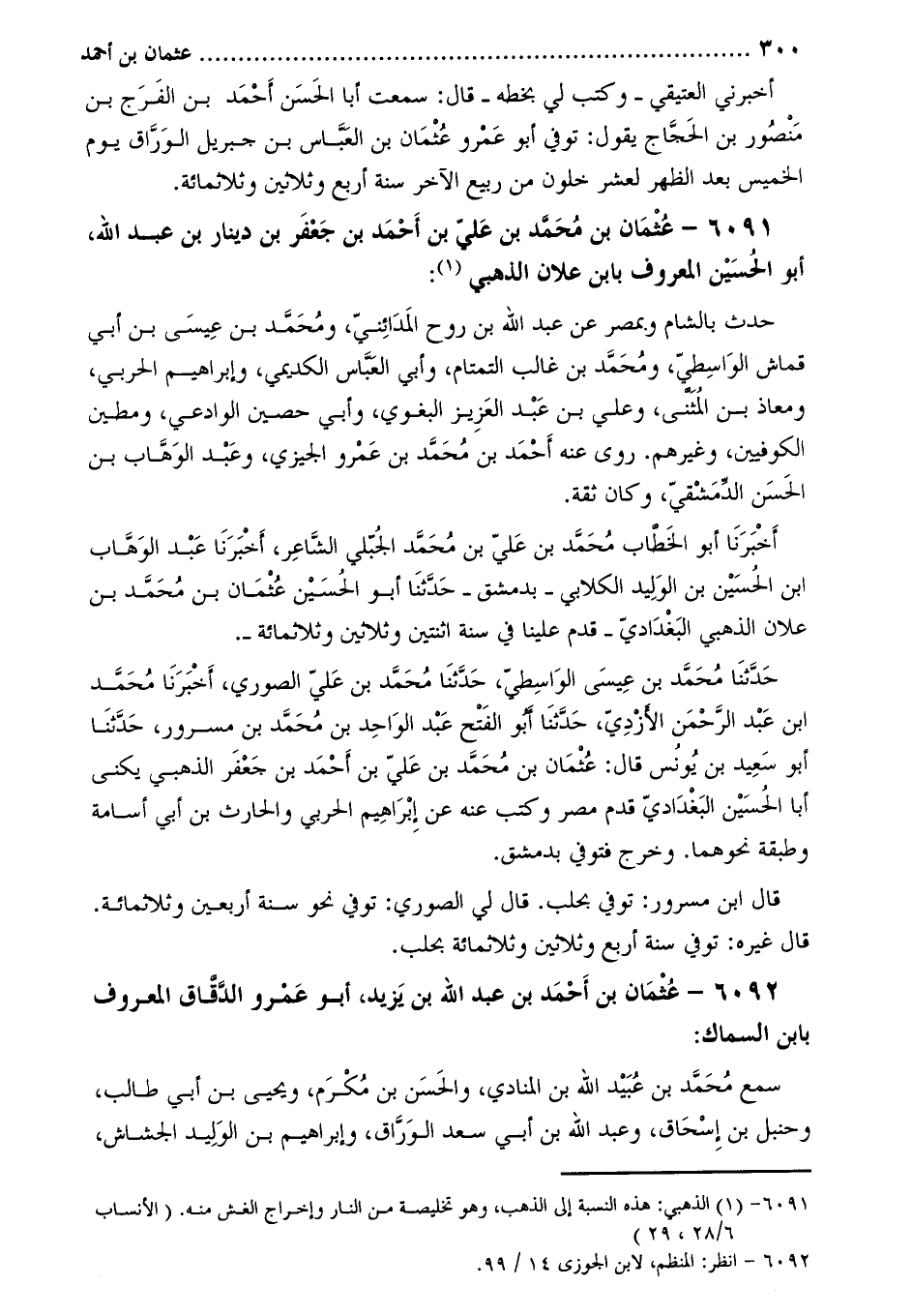 6092- عُثْمَان بْن أَحْمَد بْن عَبْد اللَّه بْن يزيد، أَبُو عَمْرو الدقاق المعروف بابن السماك [2] :