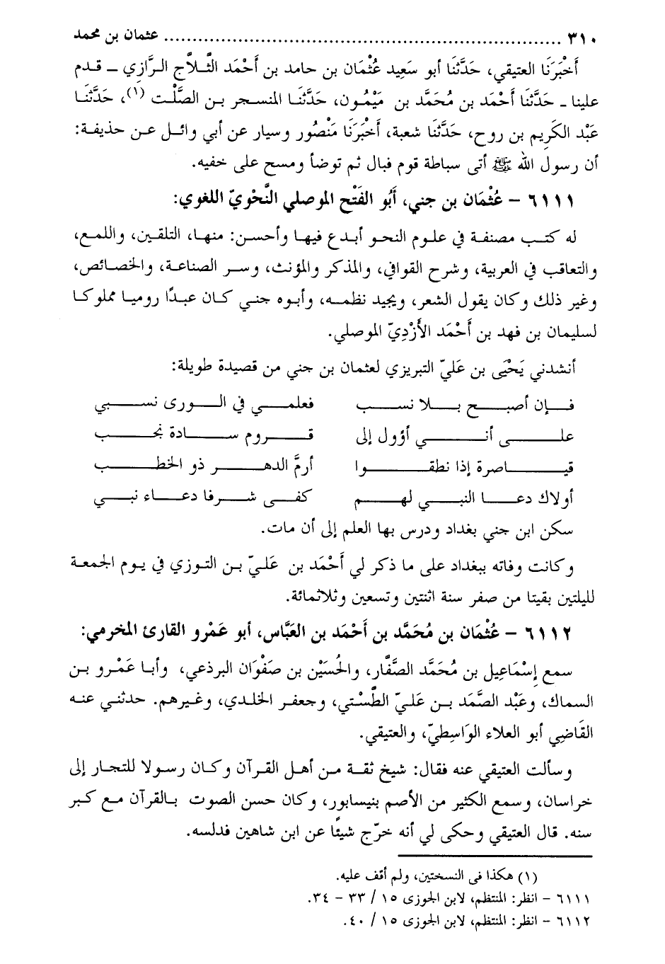 6111- عُثْمَان بْن جني، أَبُو الفتح الموصلي النحوي اللغوي [2] :
