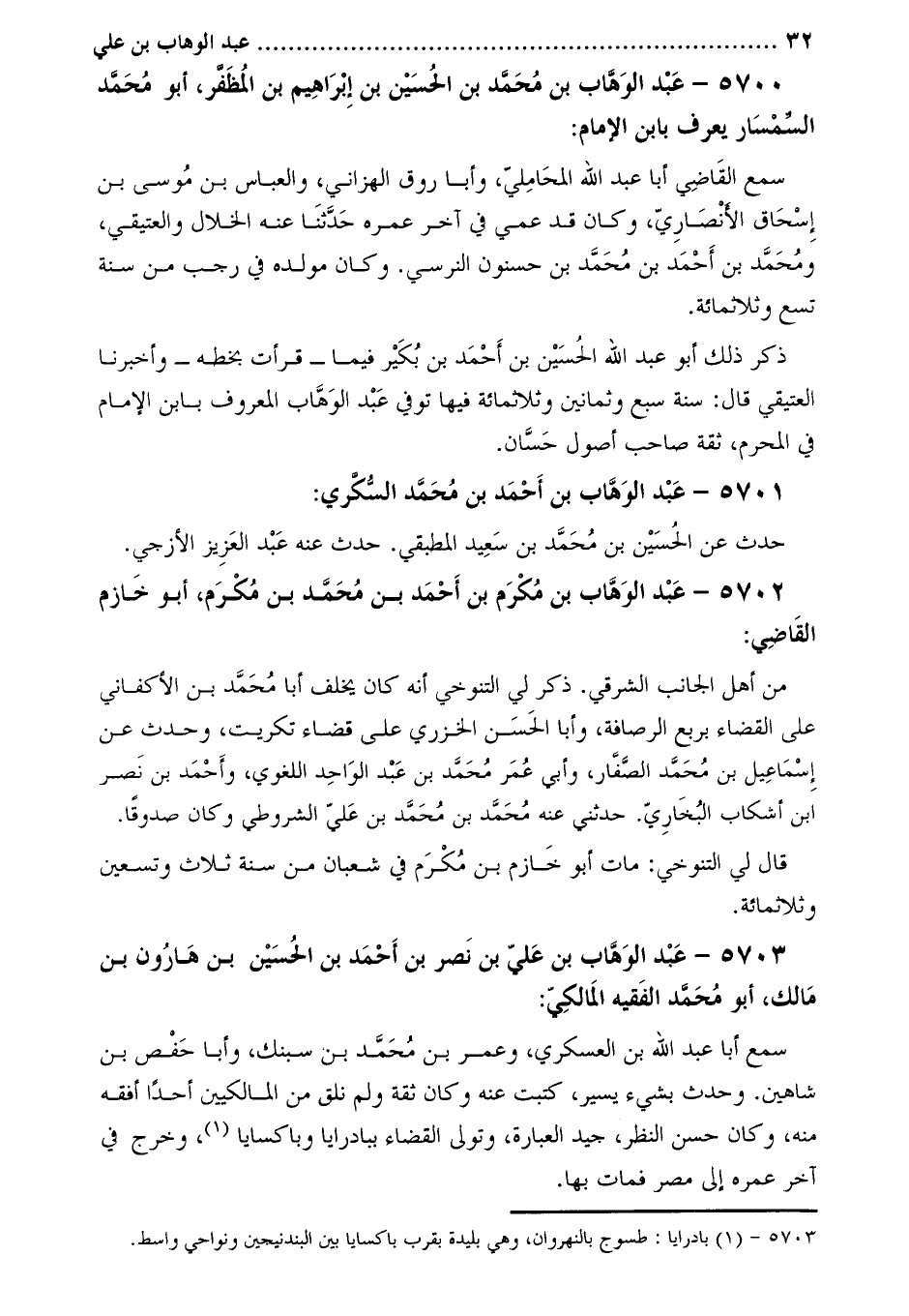5700- عبد الوهاب بْن مُحَمَّد بْن الْحُسَيْن بْن إِبْرَاهِيمَ بْن المظفر، أبو محمد السمسار يعرف بابن الإمام: