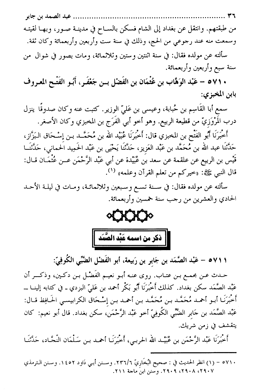 5710- عبد الوهاب بْن عُثْمَان بْن الْفَضْل بْن جعفر، أَبُو الفتح الْمَعْرُوف بابن المخبزي: