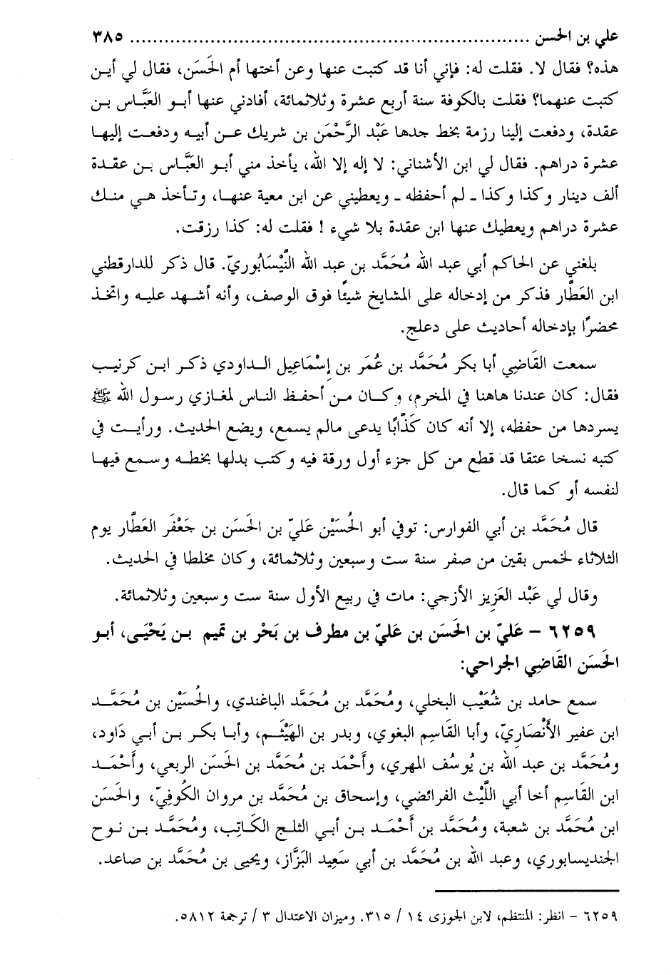 [1] 6259- انظر: المنتظم، لابن الجوزي 14/315. وميزان الاعتدال 3/ترجمة 5812.