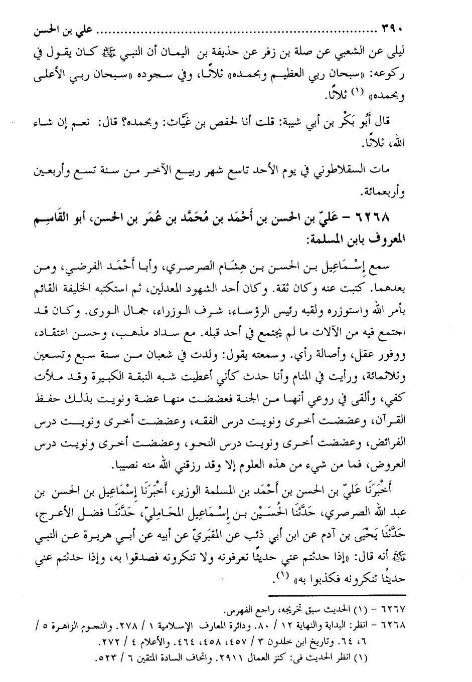 6268- عَلِيّ بْنُ الْحَسَنِ بْنِ أَحْمَدَ بْنِ مُحَمَّدِ بْنِ عُمَر بْن الحسن، أَبُو القاسم المعروف بابن المسلمة [2] :