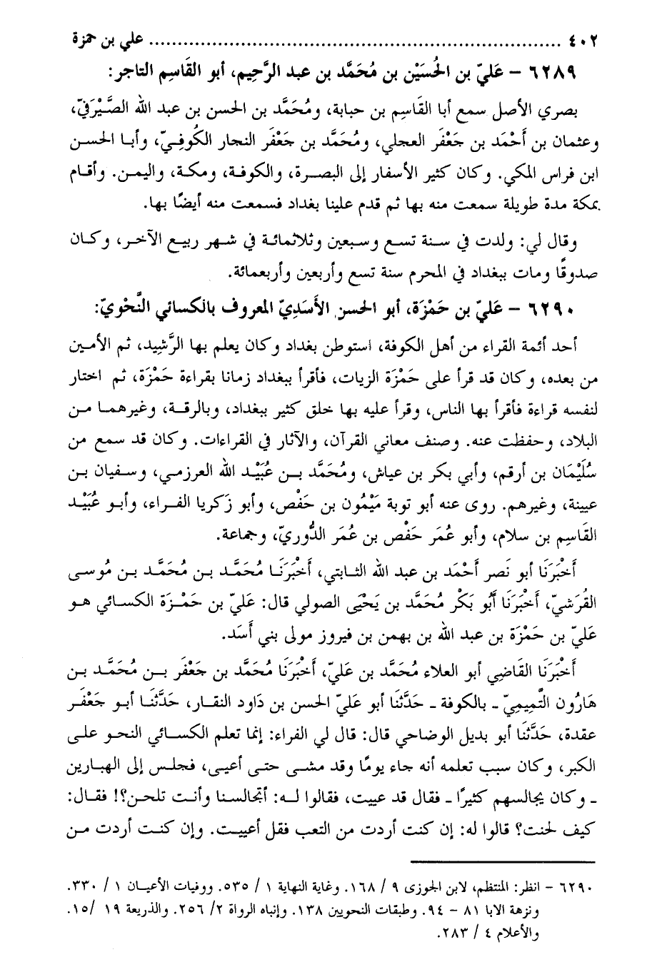 6290- علي بْن حمزة، أَبُو الحسن الأسدي المعروف بالكسائي النحوي [1] :