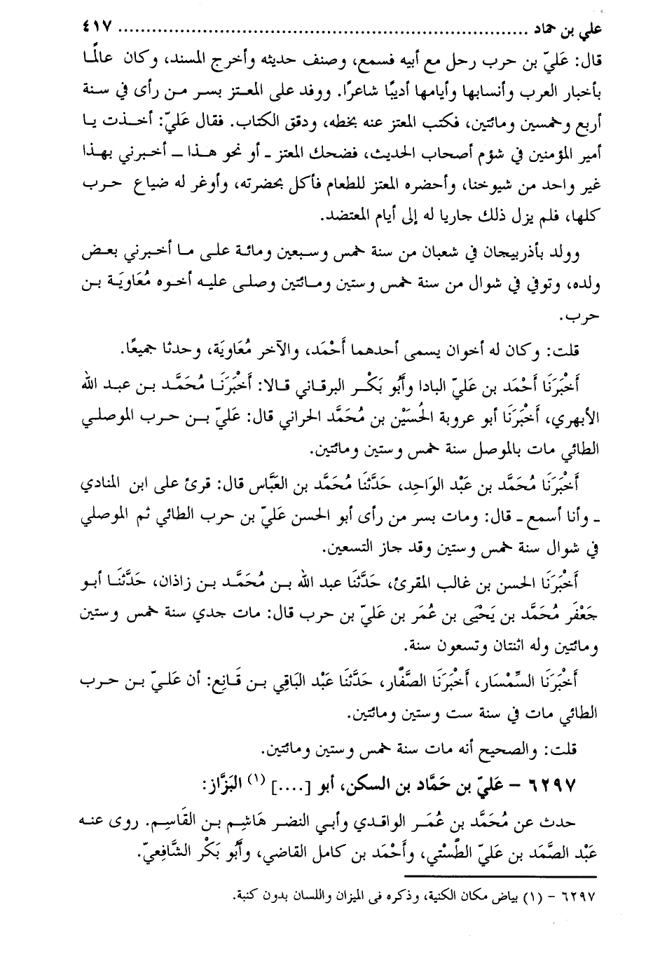 6297- علي بْن حماد بْن السكن، أَبُو [....] [1] البزاز: