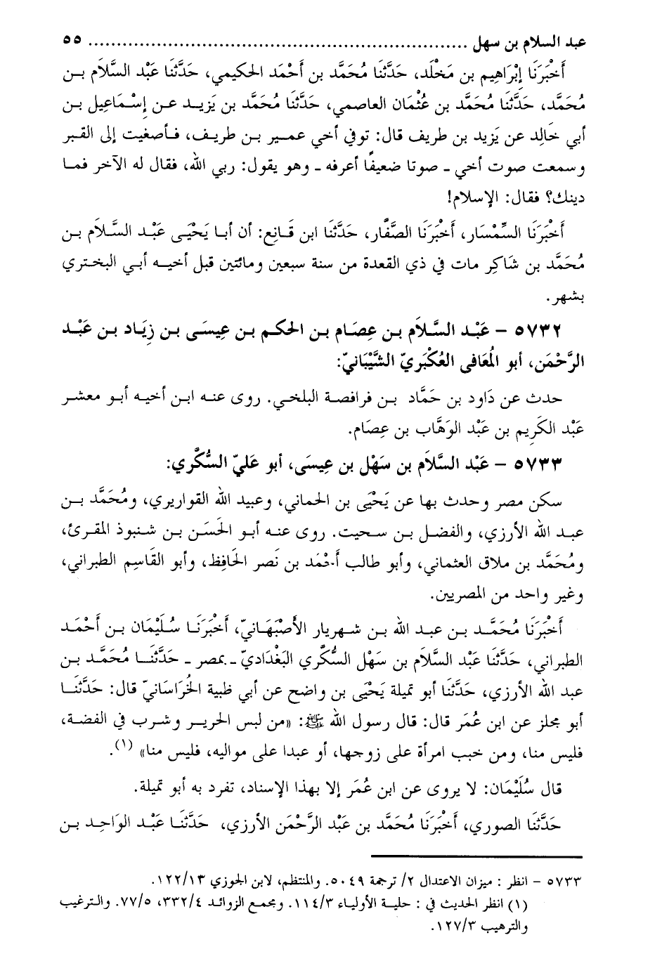 [1] 5733- انظر: ميزان الاعتدال 2/ترجمة 5049. والمنتظم، لابن الجوزي 13/122.