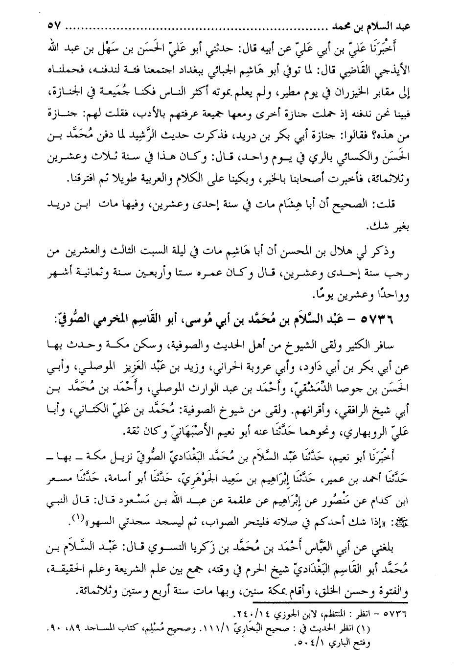 [1] 5736- انظر: المنتظم، لابن الجوزي 14/240.