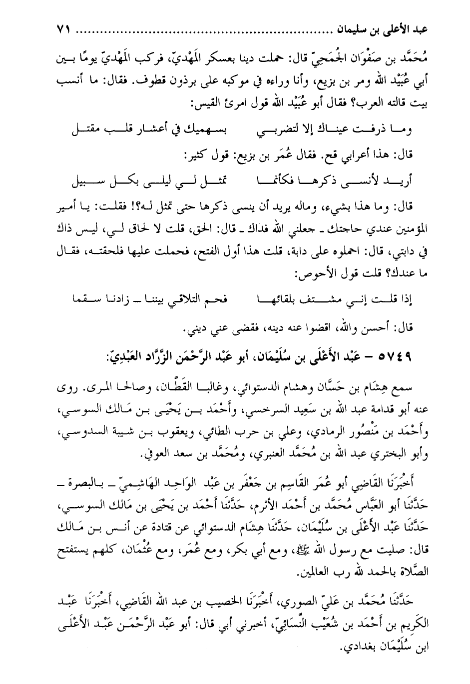 5749- عبد الأعلى بن سليمان، أبو عبد الرحمن الزّرّاد العبديّ: