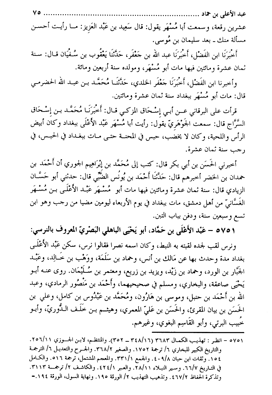 5751- عبد الأعلى بن حماد، أبو يحيى الباهلي البصري المعروف بالنرسي [1] :