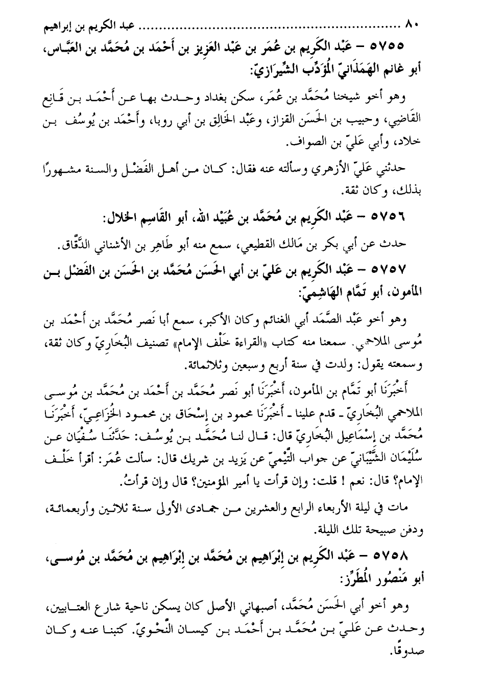 5758- عبد الكريم بْن إِبْرَاهِيم بْن مُحَمَّد بْن إِبْرَاهِيم بْن مُحَمَّد بْن موسى، أبو منصور المطرز:
