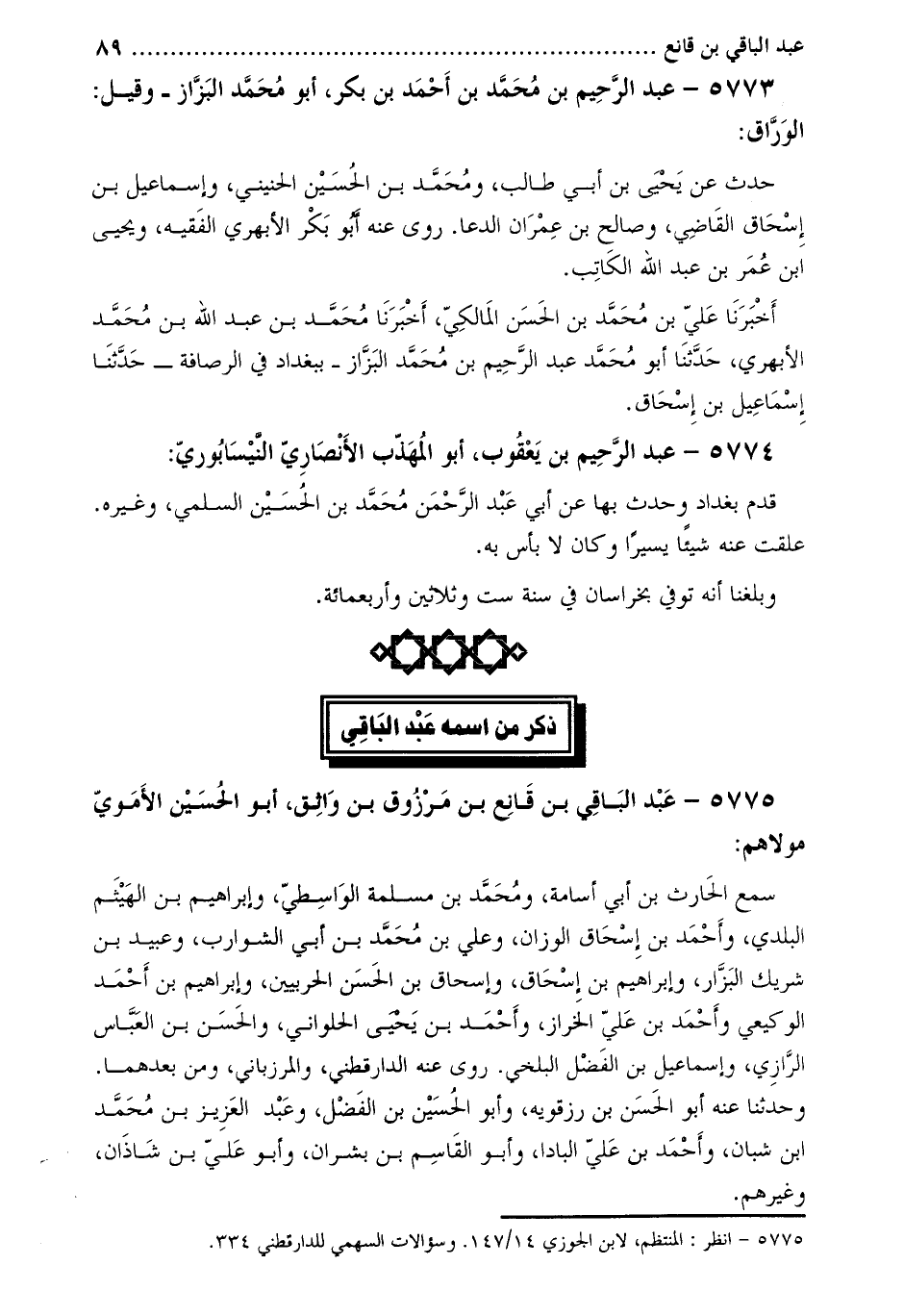 5775- عبد الباقي بن قانع بن مرزوق بن واثق، أبو الحسين الأموي مولاهم [1] :