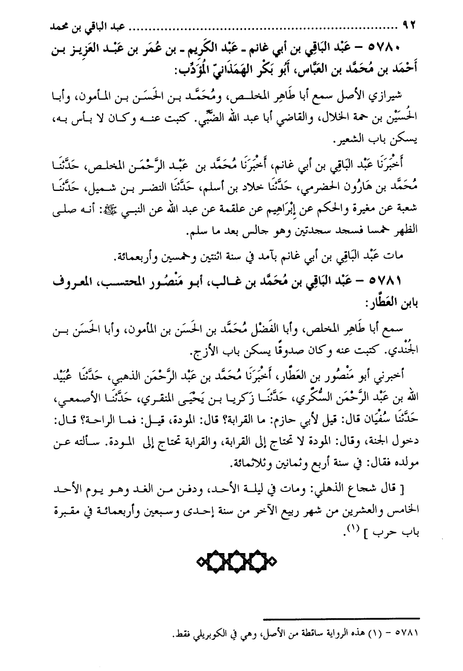 5780- عبد الباقي بن أبي غانم- عبد الكريم- بن عمر بن عبد العزيز بن أَحْمَد بن مُحَمَّد بن العباس، أبو بكر الهمذانيّ المؤدب: