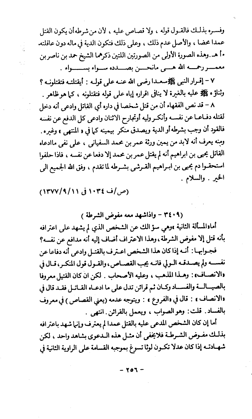 ومنه يعرف أنه لابد من يمين ورثة عمر بن محمد السفياني، على نفي ما ادعاه القاتل يحيى بن إبراهيم أنه لم يقتل عمر بن محمد إلا دفاعاً عن نفسه، فإذا حلفوا استحقوا دم يحيى بن إبراهيم القرشي بشرطه لما تقدم، وفق الله الجميع إلى الخير. والسلام.