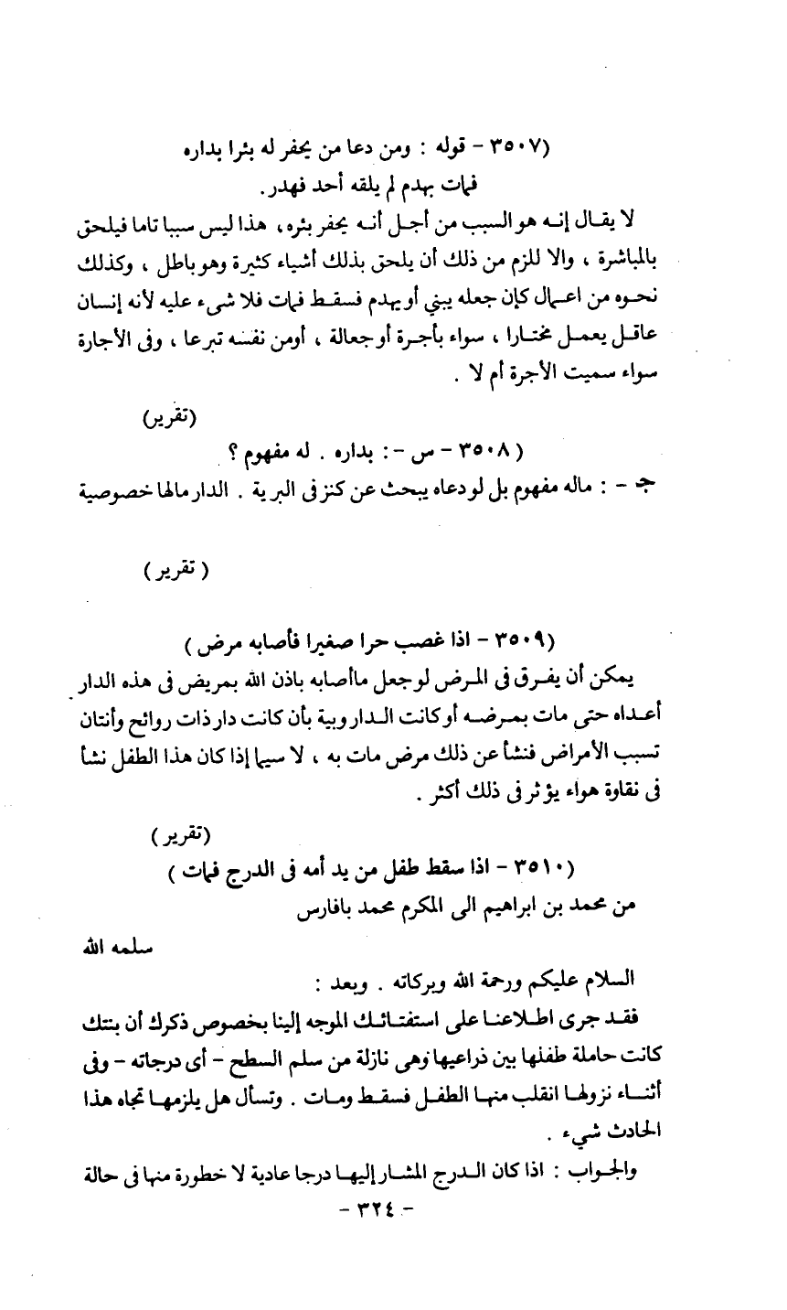 (3510- إذا سقط طفل من يد أمه في الدرج فمات)