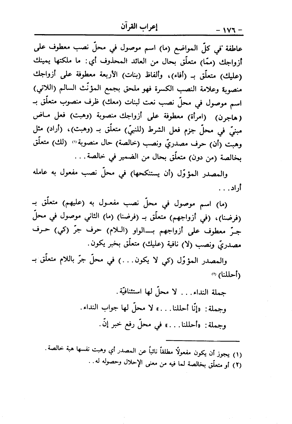 آباء «1» ، (آباء) مفعول به منصوب و (نا) مضاف إليه (الواو) عاطفة (تكون) مضارع ناقص منصوب معطوف على (تلفت) ، (اللام) حرف جرّ و (كما) ضمير في محلّ جرّ متعلّق بمحذوف خبر مقدّم للناقص (الكبرياء) اسم تكون مرفوع (في الأرض) جارّ ومجرور حال من الكبرياء «2» ، (الواو) عاطفة (ما) نافية عاملة عمل ليس (نحن) ضمير منفصل مبنيّ في محلّ رفع اسم ما (لكما) مثل الأول متعلّق بمؤمنين (الباء) حرف جرّ زائد (مؤمنين) مجرور لفظا منصوب محلّا خبر ما، وعلامة الجرّ الياء.