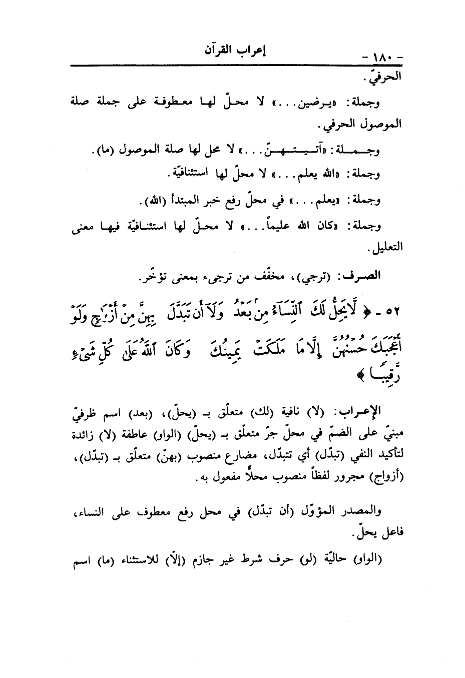 ذلك «1» ، (على خوف) جارّ ومجرور حال من ذريّة أي خائفين من فرعون (من فرعون) جارّ ومجرور متعلّق بخوف، وعلامة الجرّ الفتحة (الواو) عاطفة (ملئهم) معطوف على فرعون.. ومضاف إليه «2» ، (أن) حرف مصدريّ (يفتن) مضارع منصوب و (هم) ضمير مفعول به، والفاعل هو أي فرعون. والمصدر المؤوّل (أن يفتنهم) في محلّ جرّ بدل من فرعون بدل اشتمال «3» .