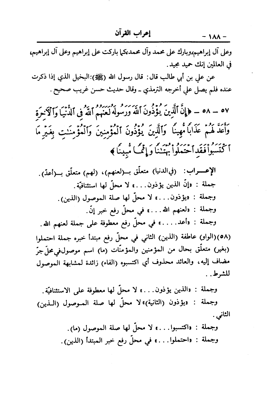 و (نا) ضمير في محلّ رفع فاعل (ببني) جارّ ومجرور متعلق ب (جاوزنا) «1» ، وعلامة الجرّ الياء فهو ملحق بجمع المذكّر السالم (إسرائيل) مضاف إليه مجرور وعلامة الجرّ الفتحة (البحر) مفعول به منصوب (الفاء) عاطفة (أتبع) فعل ماض و (هم) ضمير مفعول به (فرعون) فاعل مرفوع ومنع من التنوين للعلميّة والعجمة (جنود) معطوف على فرعون بالواو مرفوع و (الهاء) مضاف إليه (بغيا) مفعول لأجله منصوب «2» ، (عدوا) معطوف على (بغيا) بالواو منصوب (حتى) حرف ابتداء (إذا) ظرف للزمن المستقبل متضمّن معنى الشرط في محلّ نصب متعلّق ب (قال) ، (أدرك) فعل ماض و (الهاء) ضمير